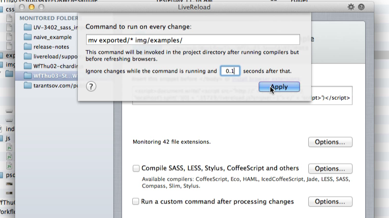 I’m going to show two different ways to move the files: the first one uses LiveReload, and the second one involves an app called Hazel.